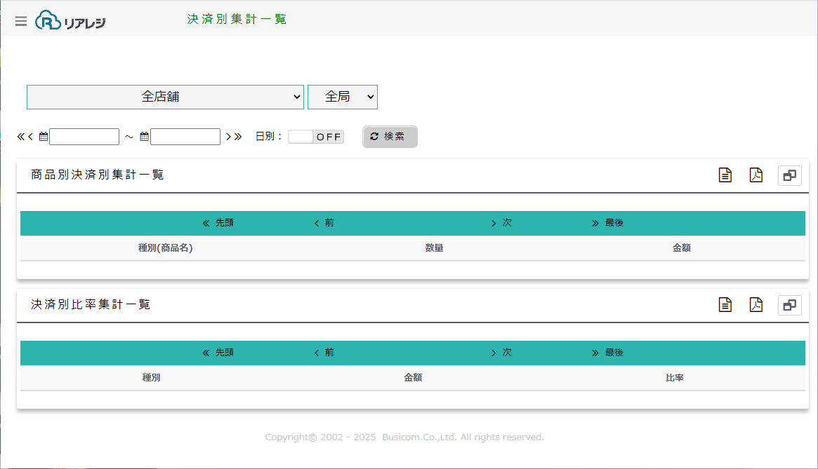 リアレジで販売したお会計を決済別に集計する機能です
