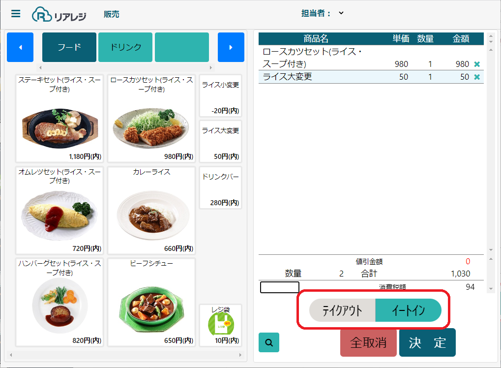 お会計時にテイクアウト/イートインの切り替えを行います