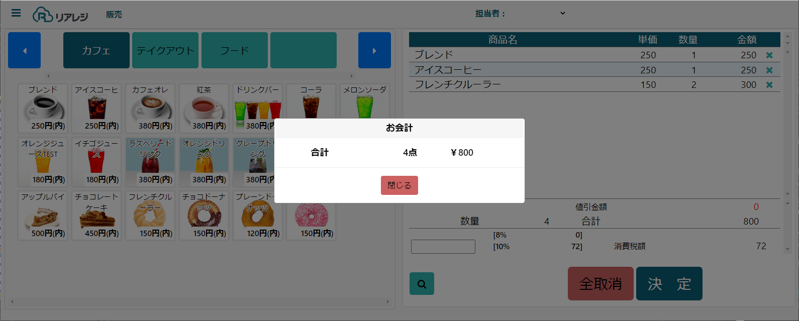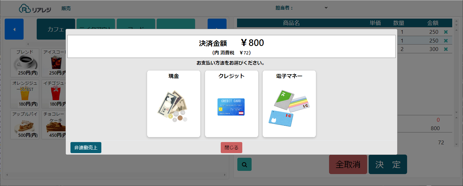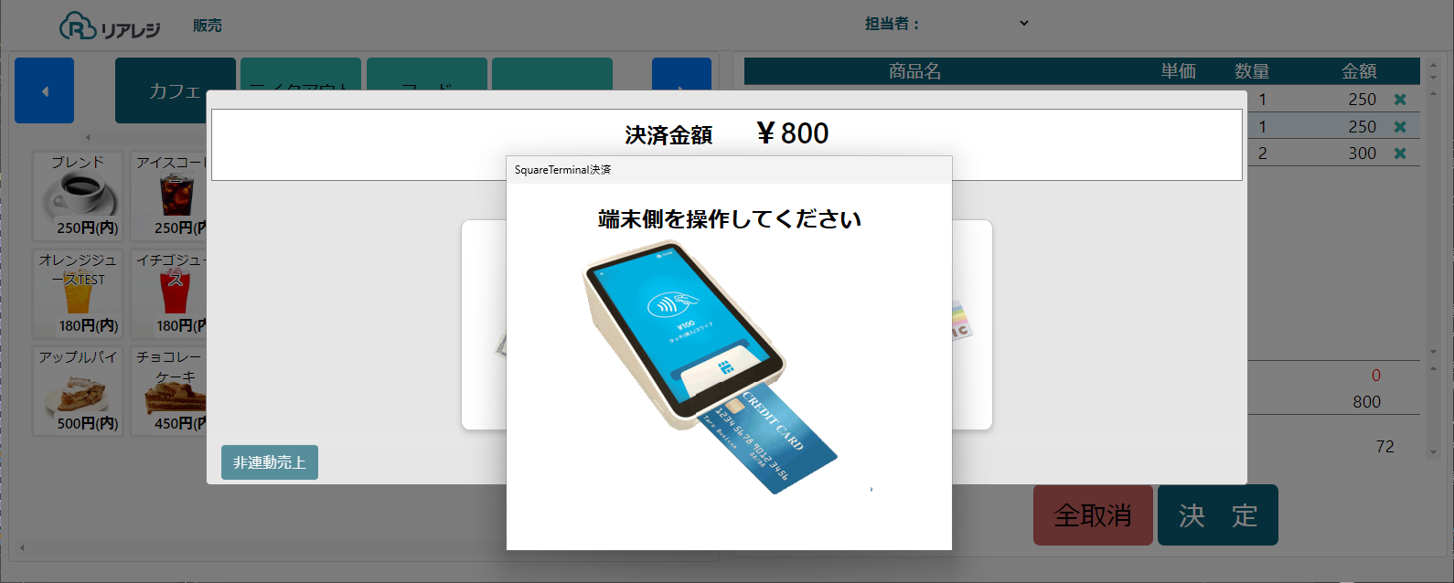 端末側の画面でクレジットカード・電子マネーの決済処理を行います